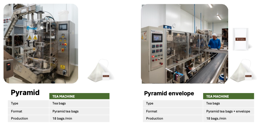 • Pyramid + bag – 20 tea bags/ min